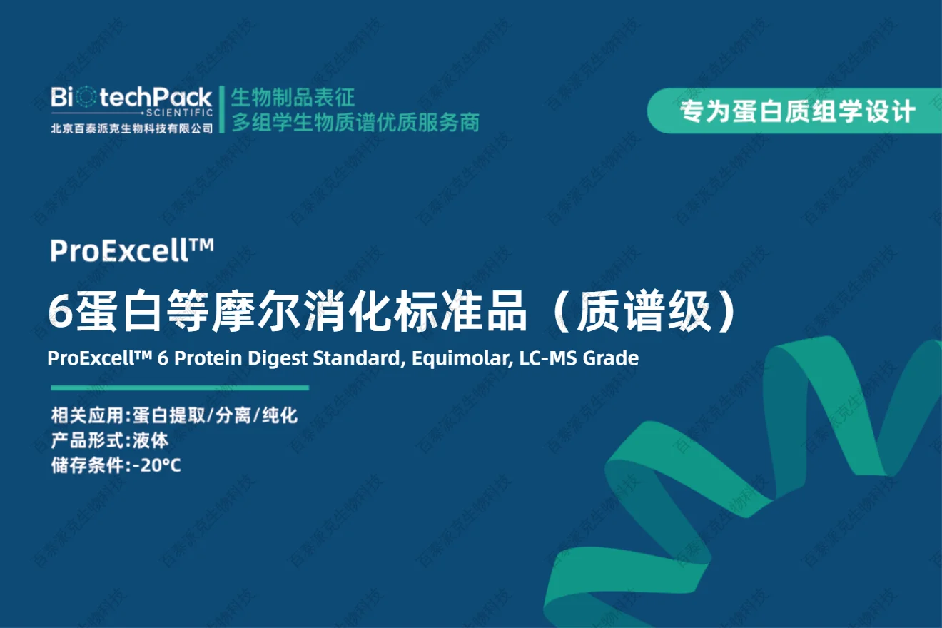 百泰派克生物科技的6蛋白等摩尔消化标准品(质谱级)由六种已消化蛋白标准按等摩尔比例组成,旨在评估LC-MS方法性能、校正系统波动,并用于蛋白质组学流程中的日常质量控制。