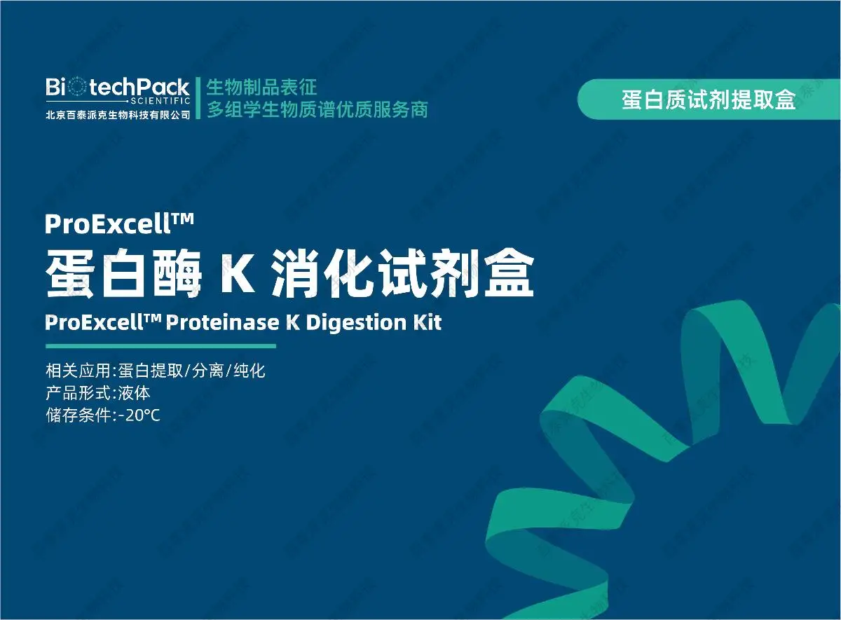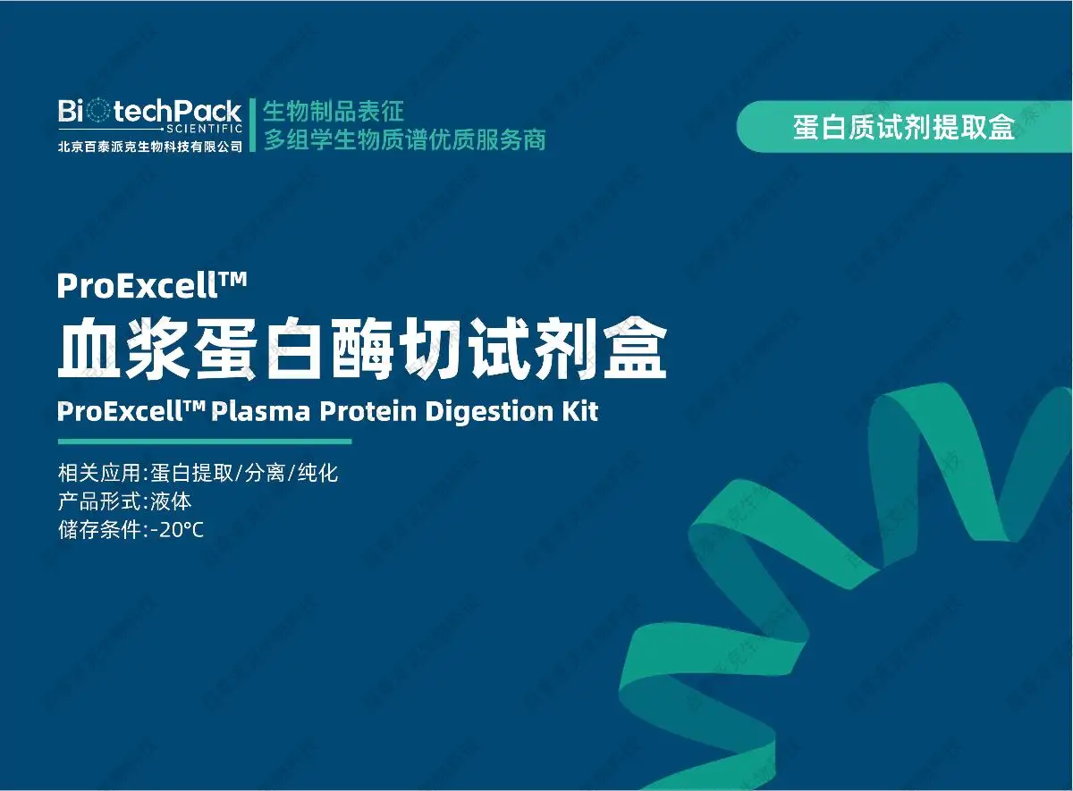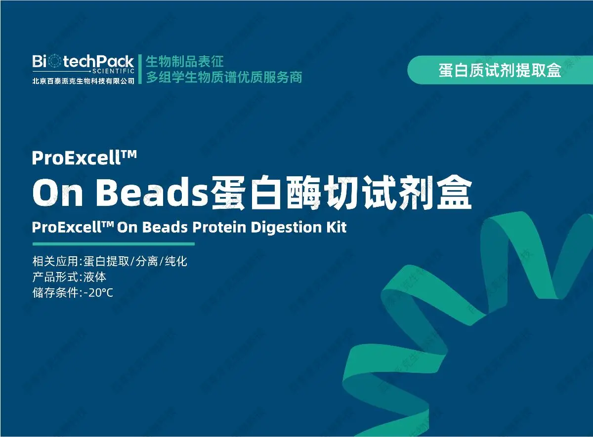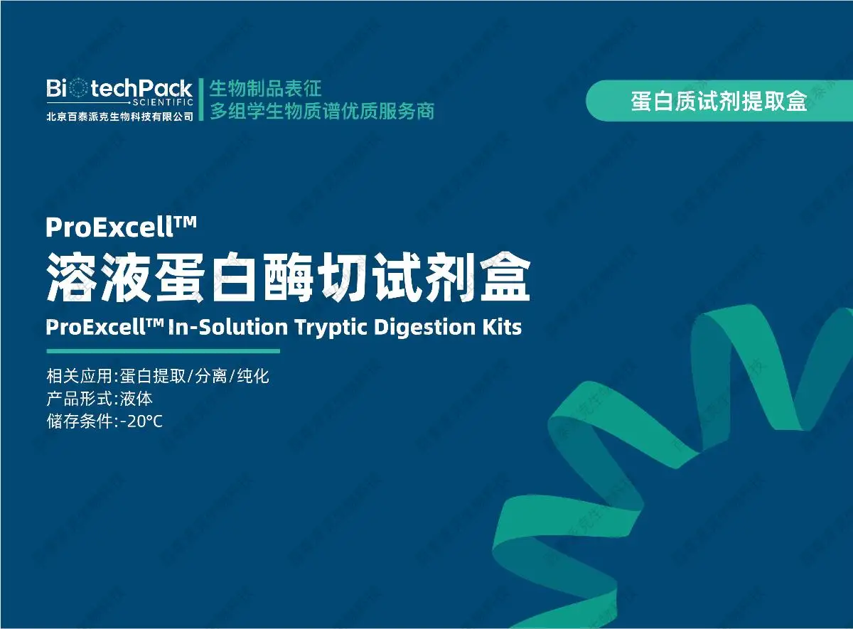 百泰派克生物科技的溶液蛋白酶切试剂盒采用高纯度胰蛋白酶,结合优化的蛋白质还原、烷基化及酶解缓冲体系,可确保蛋白质的高效降解,生成适合质谱分析的高质量肽段。本试剂盒适用于多种蛋白样品类型,包括细胞裂解液、血浆蛋白、组织提取蛋白及重组蛋白,可广泛应用于蛋白质鉴定、定量蛋白质组学、翻译后修饰分析(如磷酸化、糖基化)等领域。