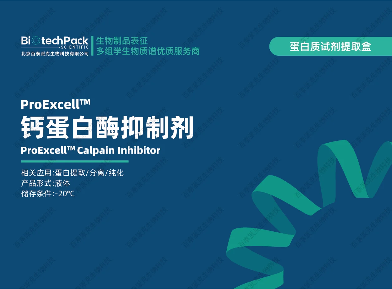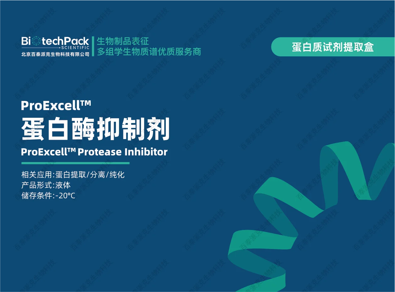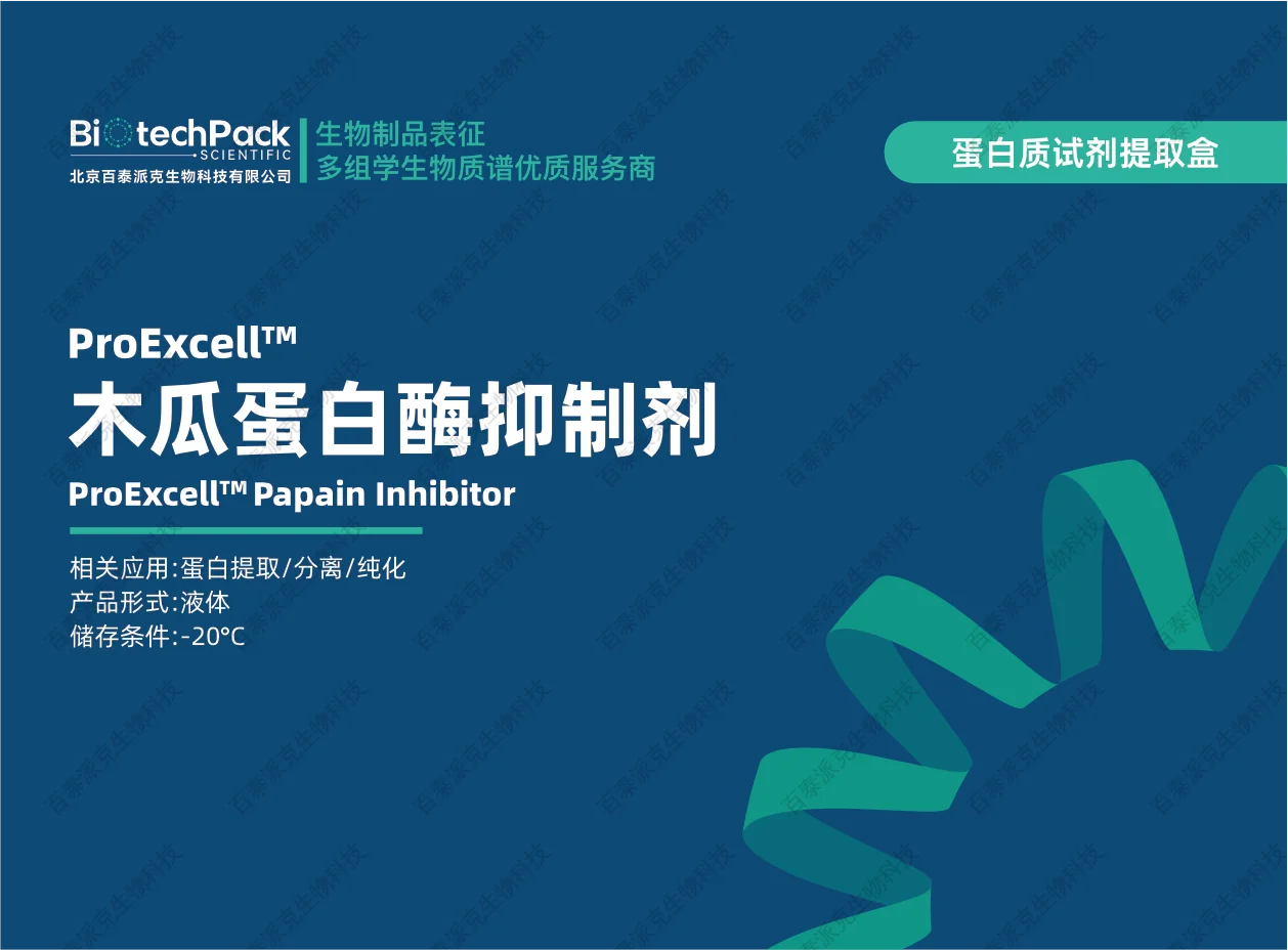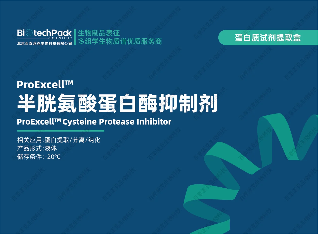 百泰派克生物科技的木瓜蛋白酶抑制剂被供应为一种即用型抑制剂,可在一步中快速抑制木瓜蛋白酶及相关半胱氨酸蛋白酶活性。通过在裂解过程中最小化蛋白水解,它有助于保持蛋白质的完整性,并为基于LC-MS/MS的蛋白质识别和定量提供一个更稳定的起始点。