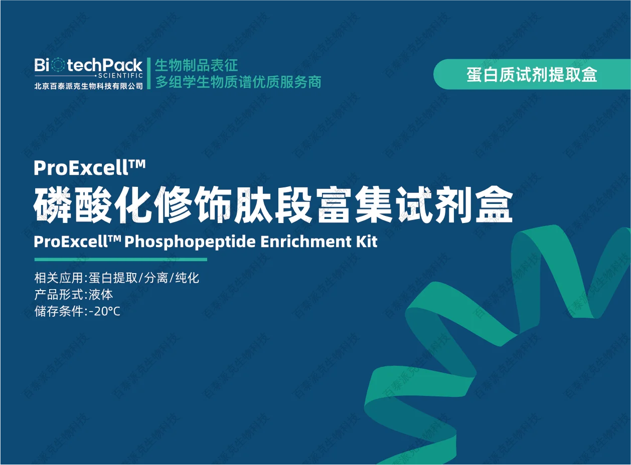 在质谱分析前对磷酸化多肽进行有效富集,是实现精准磷酸化研究的前提。为此,百泰派克生物科技推出磷酸化修饰肽段富集试剂盒,提供一种高效、稳定、操作便捷的样品前处理方案,帮助研究者提升质谱检测灵敏度,深入解析磷酸化修饰在生理与病理过程中的作用。