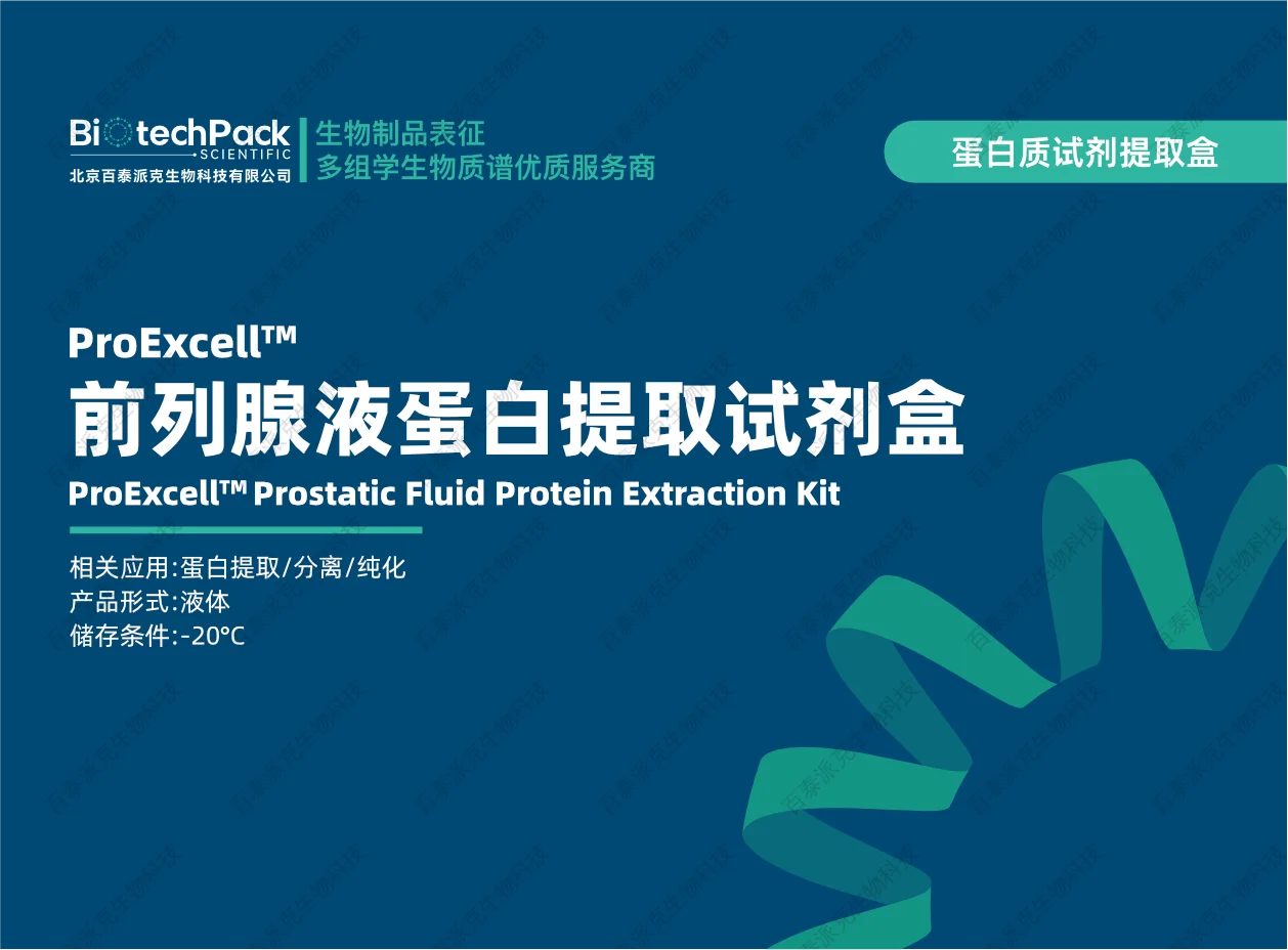 百泰派克生物科技的前列腺液蛋白提取试剂盒专为前列腺液样本开发设计,可实现目标蛋白的高效分离与富集,有效克服高黏度环境及酶促降解干扰,支持对前列腺液成分组成及其生物学功能的系统研究。